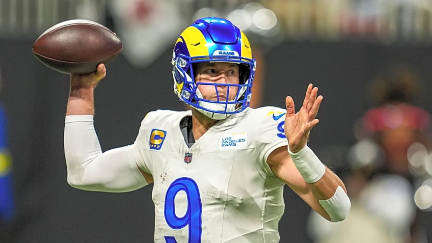 Stafford tossed three interceptions as the Rams suffered a surprising loss to the Falcons.