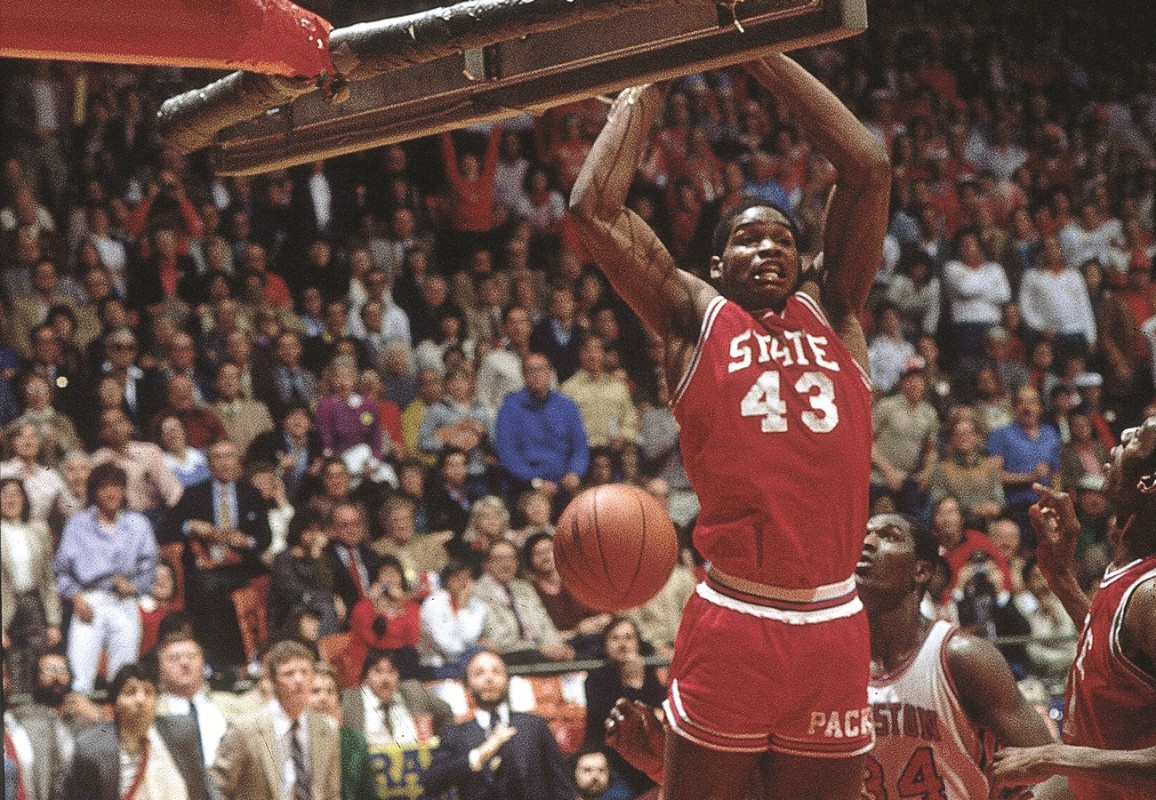 The Wolfpack were 16-10 when they hosted Wake Forest in the regular-season finale and looked nothing like a team capable of capturing a national title. But NC State routed the Deacons 130-89, then won the ACC Tournament to earn an automatic NCAA bid. Their first five wins of the tourney were mostly close — save a 75-56 rout of Utah — and they entered the championship game as underdogs against Houston and its fearsome Phi Slamma Jamma juggernaut.