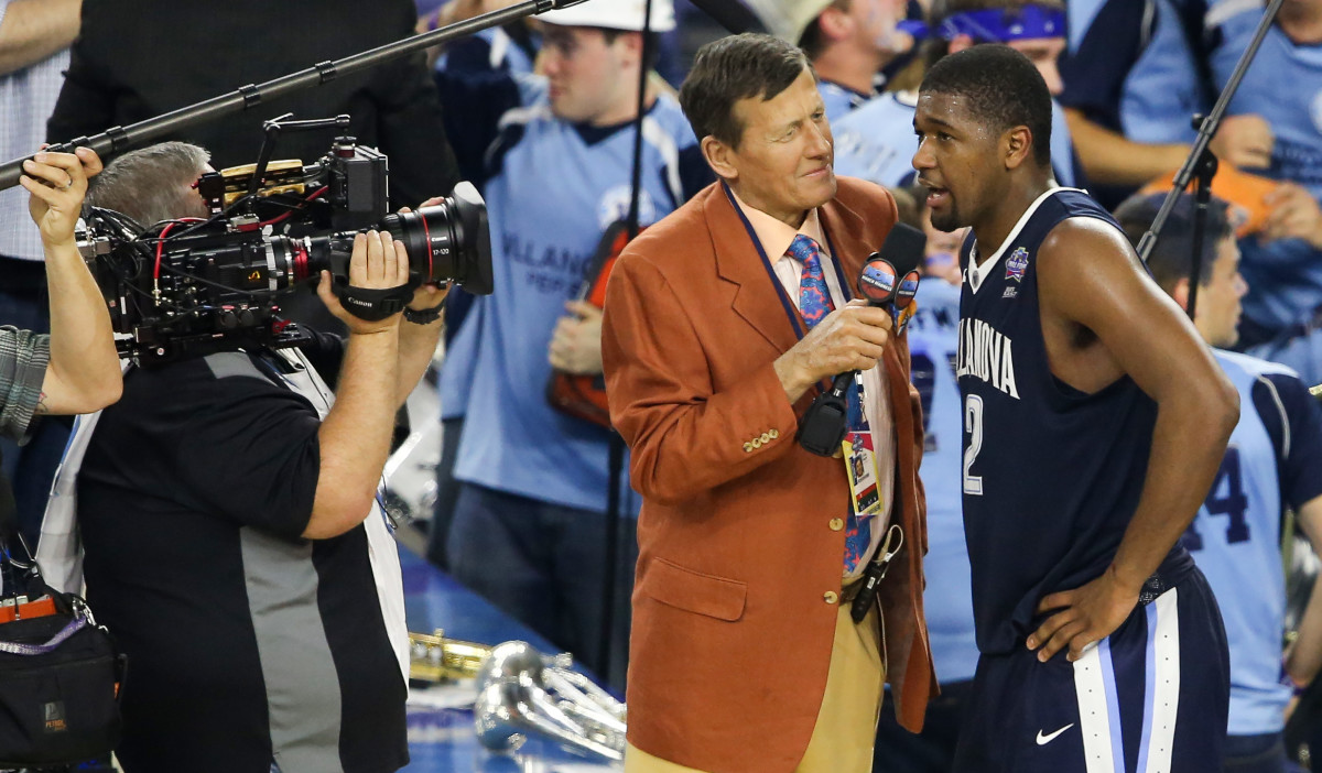 Arcidiacono drove toward the top of the key, drawing two defenders, then shoveled the ball backward to Jenkins trailing the play. Jenkins caught it, rose, released and won the NCAA title.