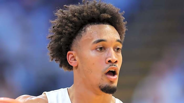 After losing three of four games, head coach Hubert Davis decided to shake things up, benching Kyan Evans in favor of Derek Dixon. In those three games, the freshman guard has been one of the main catalysts for the Tar Heels' improved play. That was on full display against Virginia, as the 6-foot-5, 200-pound guard totaled 11 points, seven assists, and four rebounds. Dixon's willingness to push the ball up the floor was instrumental in the comeback win.
