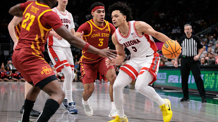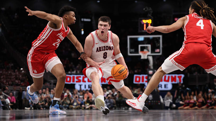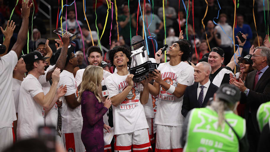 The Wildcats ended the first half with a 44-36 lead behind Jaden Bradley's 13 points and Brayden Burries' 12. The Cougars attempted to storm back and got to within three points late in the game, but Arizona held on to secure the Big 12 Tournament trophy.