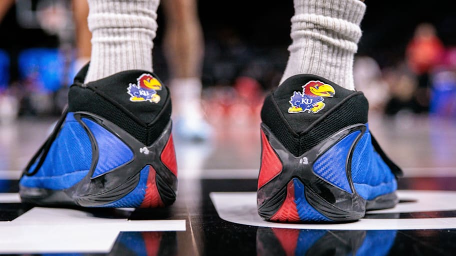 Kansas Jayhawks guard Elmarko Jackson wore the adidas Anthony Edwards 2 in a player-exclusive colorway. Online shoppers can find several general-release colorways at adidas.com.