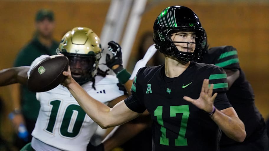 North Texas QB Drew Mestemaker, who detonated Charlotte for a school- and conference-record 608 yards in Week 9, followed with an efficient 19-of-24 for 234 yards in a 31-17 win that ended Navy's 10-game streak. Mestemaker is third at 2,702 yards (21 TD, four INT) as the Mean Green balanced out with a four-touchdown day from RB Caleb Hawkins.