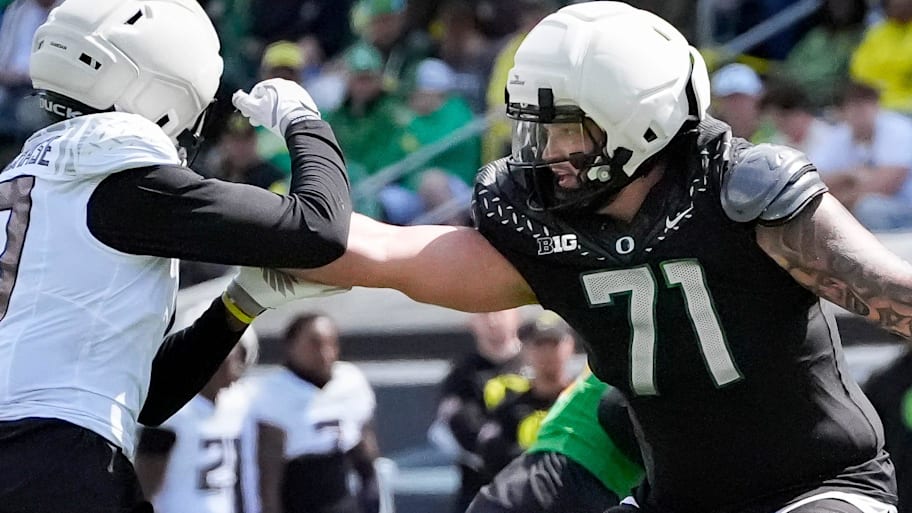For the second year in a row, the Oregon Ducks consulted the transfer portal to rebuild a majority of their offensive line for the 2025-2026 season and found Joe Moore Award finalist-worthy success.