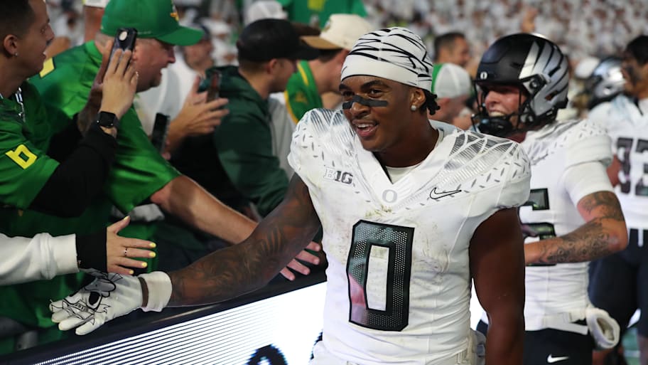 Oregon quarterback Dante Moore raved about the Ducks' run game after the win.