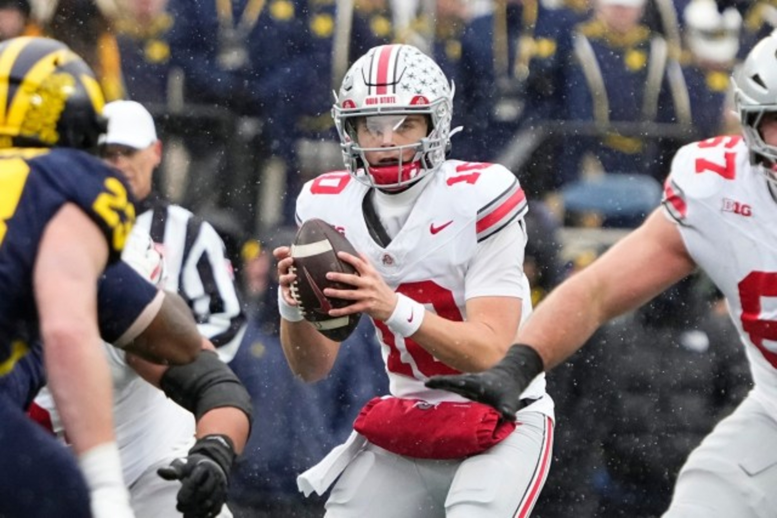 Julian Sayin left no doubt that he belongs in the Heisman conversation with his performance last Saturday. The Buckeyes’ quarterback was precise and poised in Ohio State’s decisive victory over the Michigan Wolverines. He completed 19 of 26 passes for 233 yards, three touchdowns, and one interception.