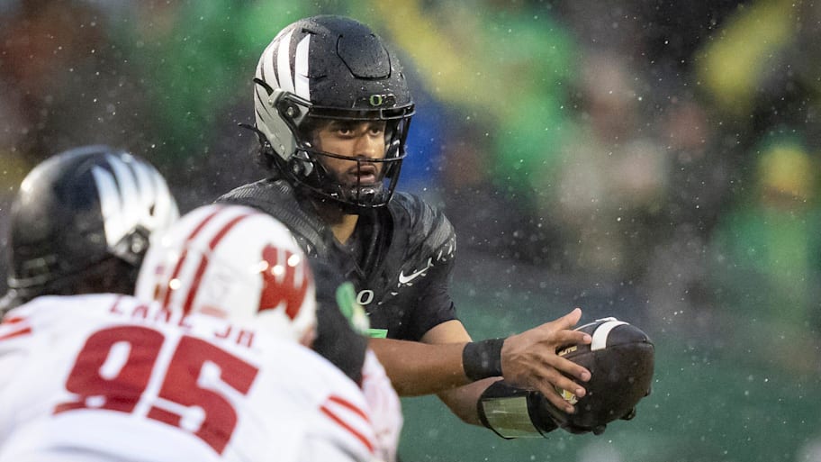 In Oregon's rainiest games against Iowa (61.9) and Wisconsin (60.0), Dante Moore threw some of his worst games of the season pass percentage wise, and noticeably his least amount of pass attempts against Wisconsin (9-15).
