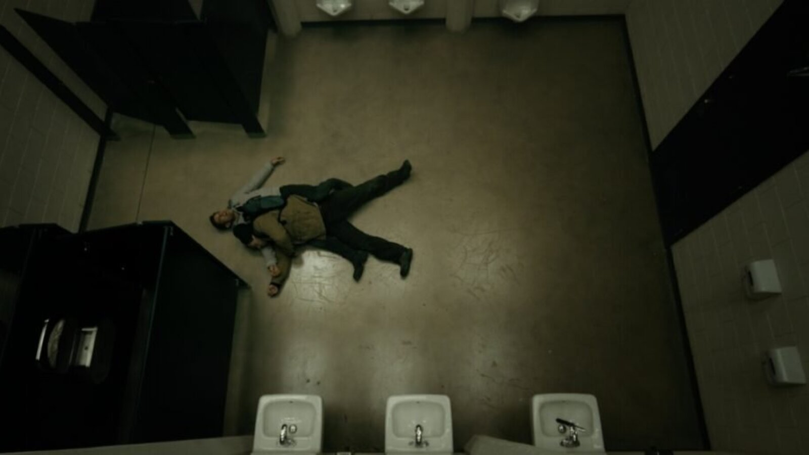 Charlie goes to the car and Jason runs upstairs through a less crowded library area. Jason 2 slams his pursuer through the door into a campus bathroom and attacks him, and the scarred Jason pulls out a knife and attacks back. Jason 2 chokes the other Jason to death and drags his body into a stall. Meanwhile, Charlie parks the car and a police officer pulls up behind him with his lights on.