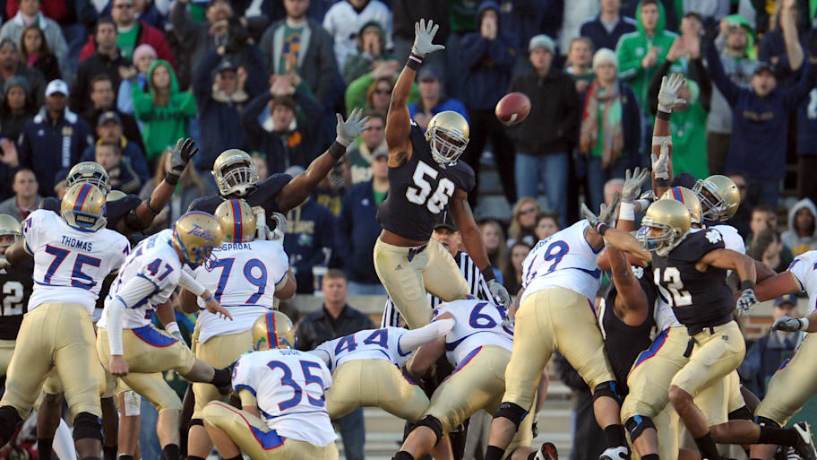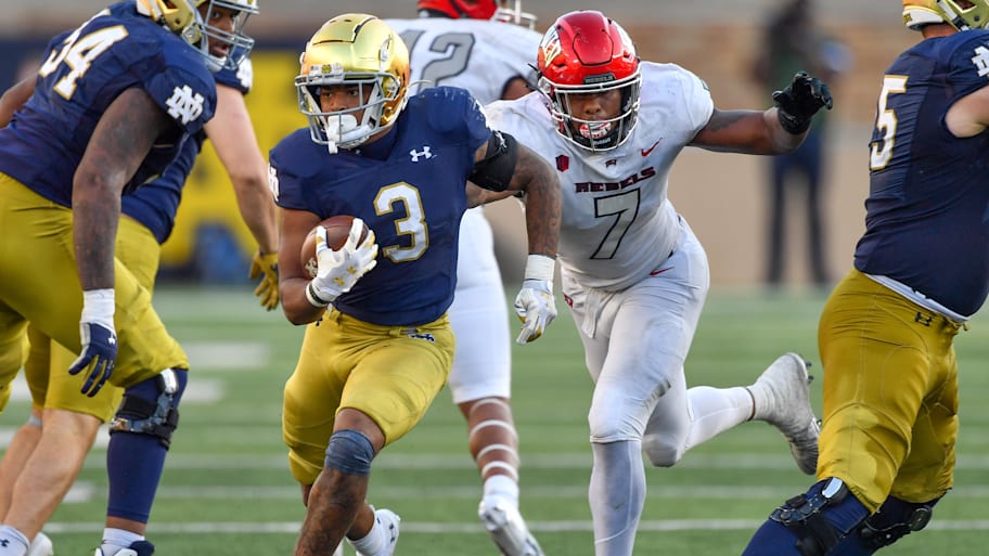 Isaiah Foskey proved to be UNLV's Anti-Hero as he blocked two punts in Notre Dame's 44-21 victory in Marcus Freeman's first season as head coach.