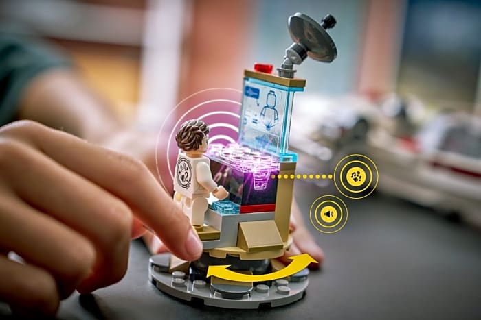 The LEGO Group shares, “For the first time in the history of LEGO Star Wars™, with LEGO SMART Play™ sets, the battle comes to life, allowing fans to recreate iconic scenes and interactions, as well as create new ones. Fans can unlock SMART features such as Lightsaber™ hums with the SMART Minifigures of Darth Vader and Luke Skywalker, the engine roar of the A-wing and even listen to ‘The Imperial March’ with Emperor Palpatine sitting on his throne.”