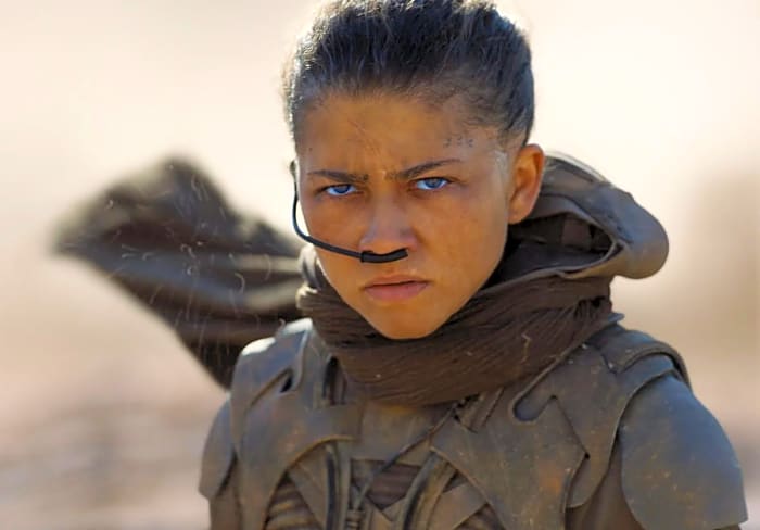 Chani seems to be squaring off against two other Fremen. So could she be fighting the rebellious plot against Paul? What’s interesting, however, is that it looks like they are all standing on the back of a sandworm. The Dune Messiah novel briefly mentions some conspirators attempting to smuggle a sandworm off of Arrakis, in the hopes of starting their own spice trade. So, we avid readers might get to see this fully played out in a massive action scene.