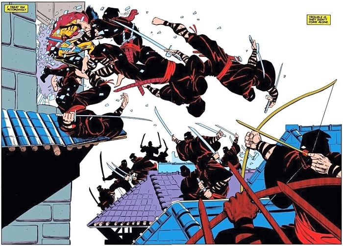The Hand primarily face off against Daredevil and ground-level New York heroes, or against Wolverine, Psylocke, and other more ninja-adjacent members of the X-Men roster. Ninjas were big in the 1980s and both Frank Miller and Chris Claremont were huge fans of Japanese culture. When the pair teamed up for the first Wolverine solo miniseries in 1982, Logan went to Japan and took on the Hand.