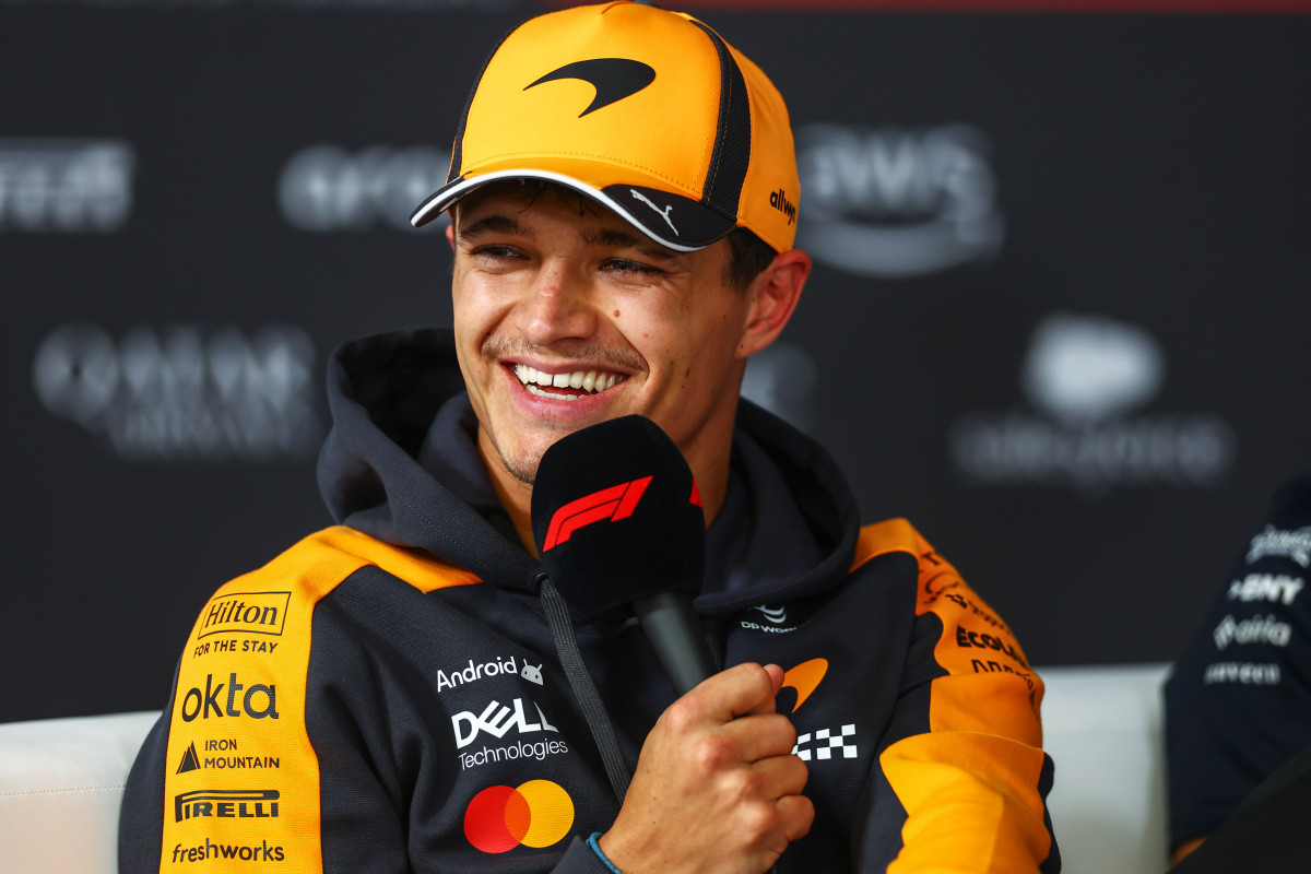 The joke landed as classic Norris — dry, quick, and delivered with a smile.
