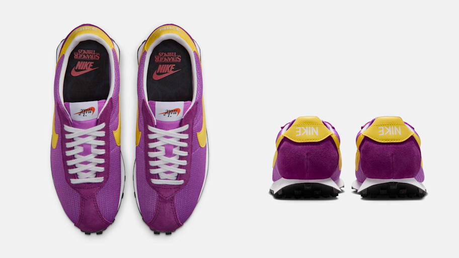 The Nike x Stranger Things LD-1000 features a dreamy Fuchsia Dream and Viotech color scheme. It is inspired by 1987 nostalgia, from the colors to the silhouette.