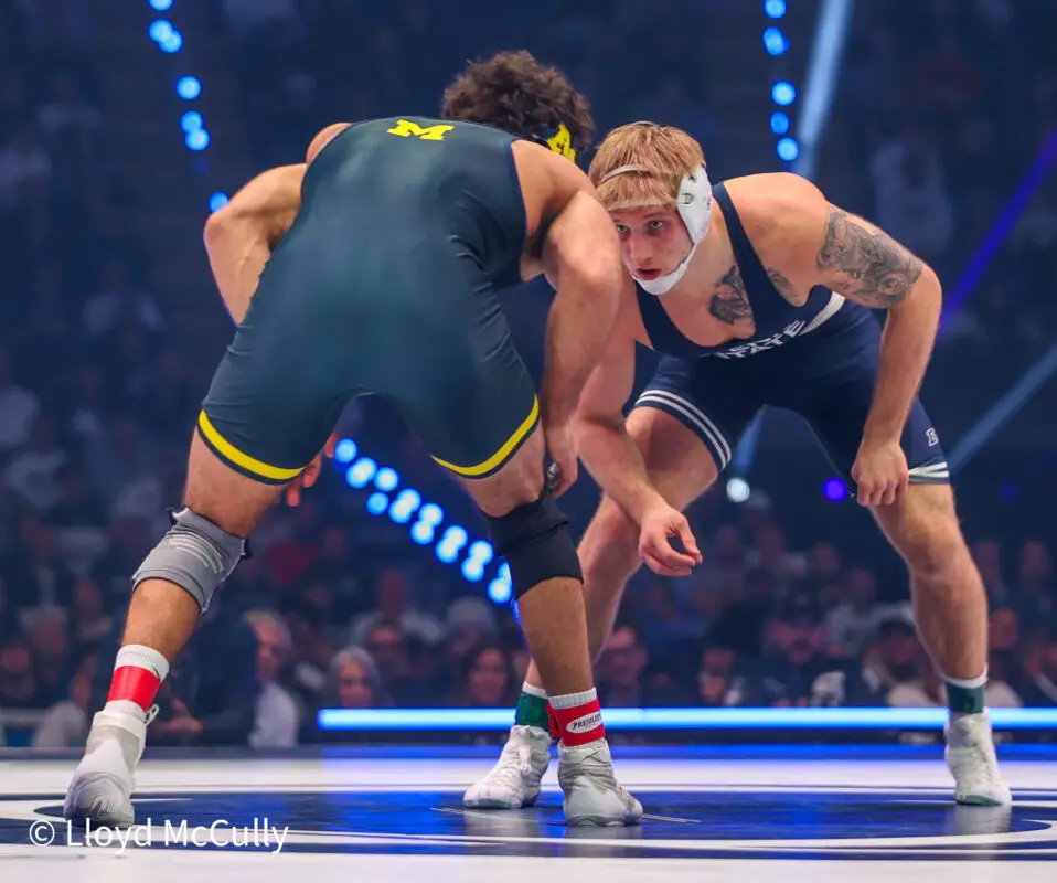 149 – No. 1 Shayne Van Ness (PSU) major dec. over No. 13 Lachlan McNeil (MICH) 9-1, PSU 17 MICH 0