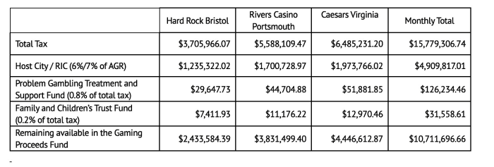Each month, these distributions support various community and state programs, ensuring that the casino revenues benefit Virginia’s citizens.