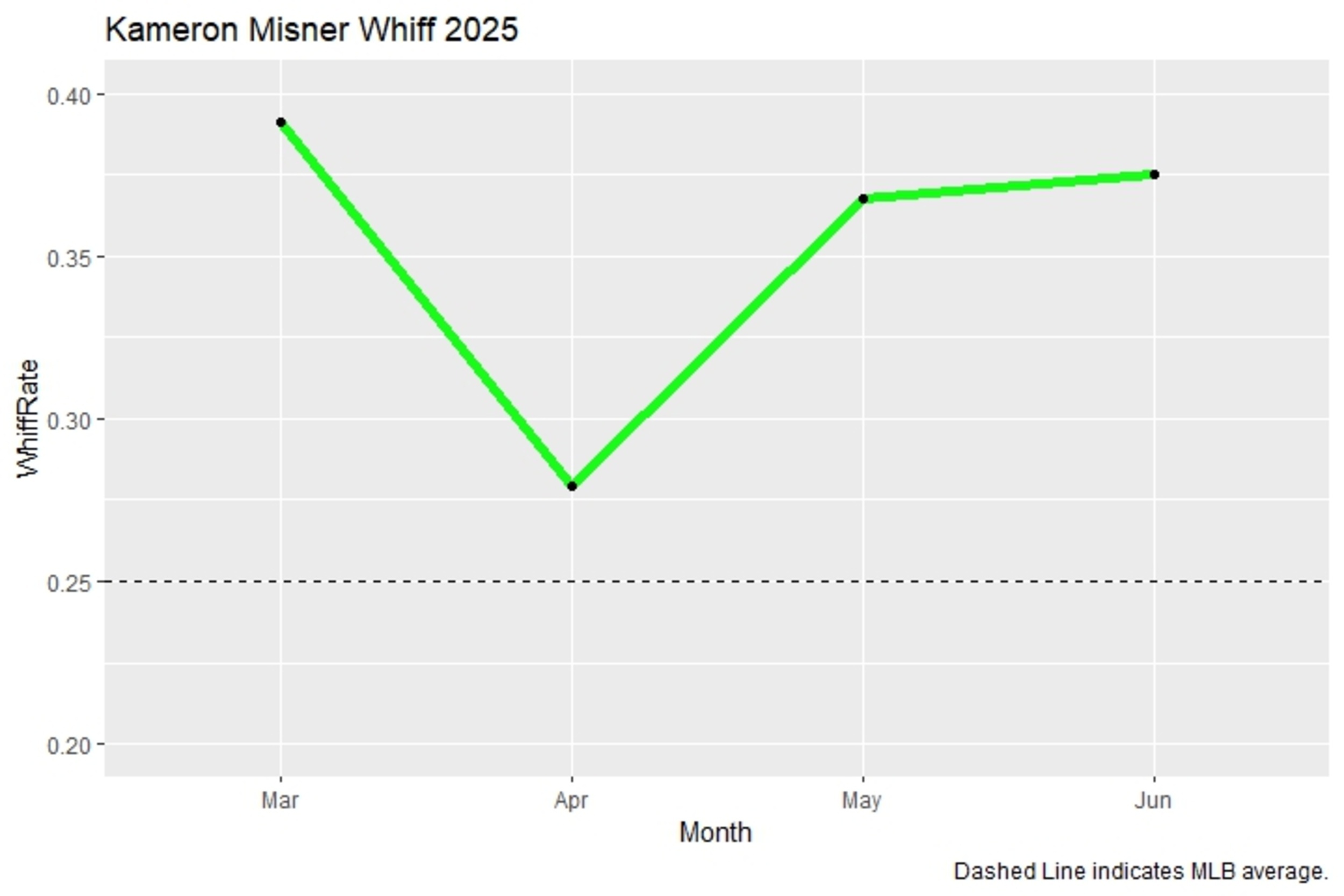 Over the first month of 2025, Misner performed very well. Through April 30, Misner slashed .320/.369/.560 with three home runs and 11 extra-base hits across 26 contests. His .390 wOBA ranked in the top 30 of MLB during that span (min. 75 PA).