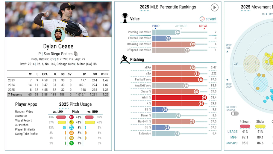 Cease is coming off a 2024 season with the San Diego Padres in which he went 8-12 with a 4.55 ERA. With no extension agreed upon during the regular season, there's no certainty he'd return to San Diego.