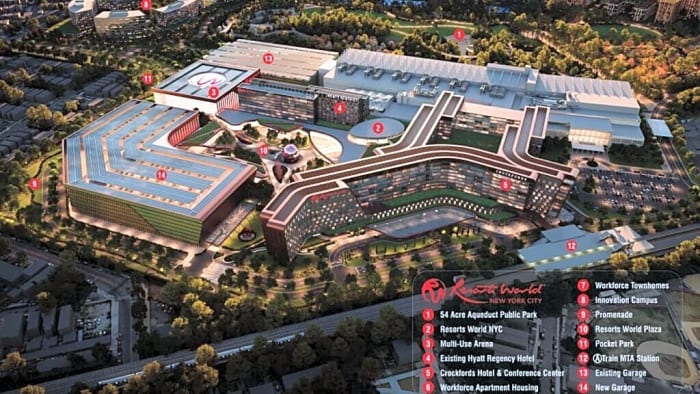 2. Resorts World New York City (Queens): Located at the Aqueduct Racetrack, this proposal is seeking to expand its current “racino” (a race track with gaming machines) into a full-blown casino.