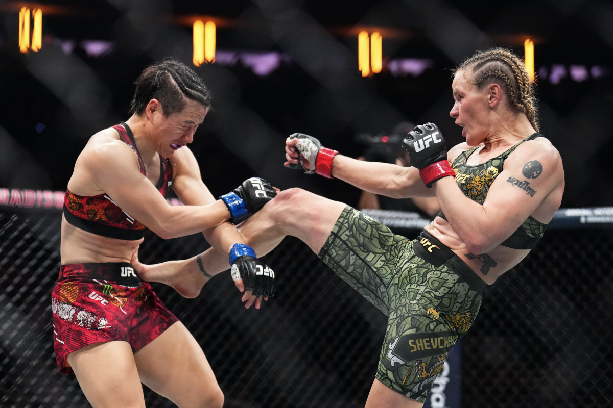 Valentina Shevchenko controlled nearly every phase of the championship fight, mixing sharp, disciplined striking with steady dominance on the ground across all five rounds. She repeatedly disrupted Weili’s entries with clean counters, body attacks, and timely takedowns, often advancing into strong positions like side control and half guard while staying active with short, calculated strikes. Weili had scattered moments of offense, but Shevchenko’s clinch work, pressure, and defensive awareness consistently shut down her attempts to build momentum. By the late rounds, the champion was firmly in command, outworking Weili in every exchange and closing the fight with another stretch of top control. It was a composed, methodical performance from Shevchenko from start to finish.