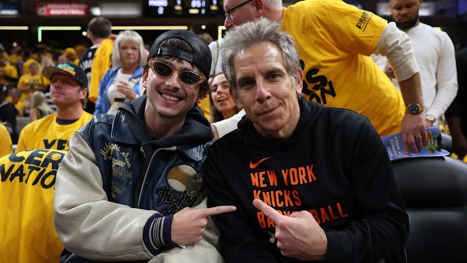 Meyers went on to show photos from KAT's Facetime calls with Ben Stiller and Chalamet after the cup win. Stiller, Chalamet and of course Spike Lee were courtside staples during the Knicks' Eastern Conference finals run, and clearly developed a rapport with some of the players.