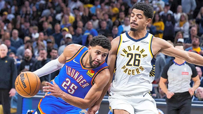Mitchell, who scored 21 of his 26 points through four quarters, earning extended playing time in both overtime periods, discussed what it was like sharing the floor with Gilgeous-Alexander throughout. It was a new experience for the Thunder’s 2024 second-round pick.