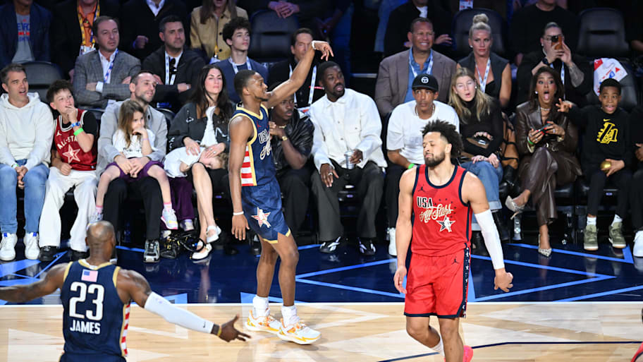 Anthony Edwards had just hit a shot on the other end to give USA Stripes a lead in the final seconds. LeBron James got the ball near the top, and turned down a logo triple to hit Donovan Mitchell in the paint. Mitchell kicked to Fox in the corner, and he stepped to the side and drilled the shot for the win.