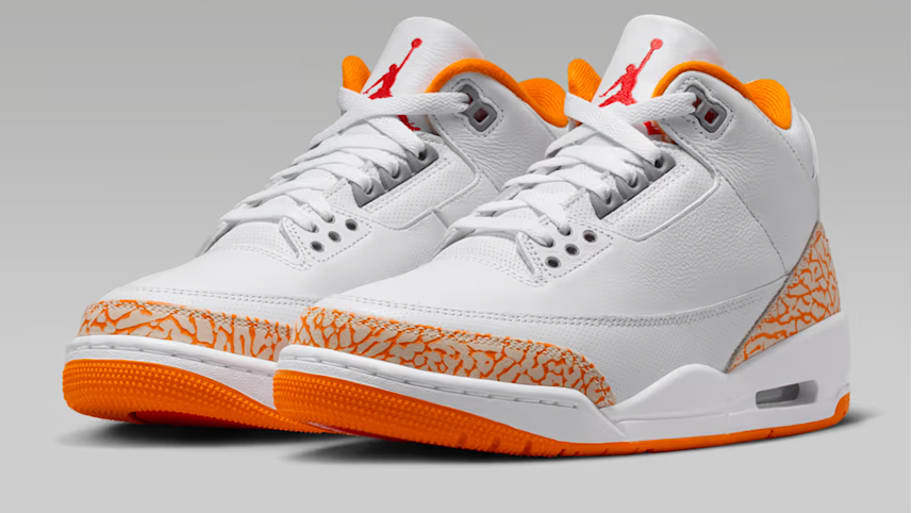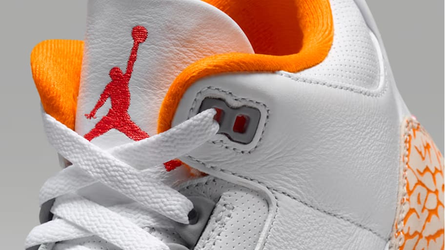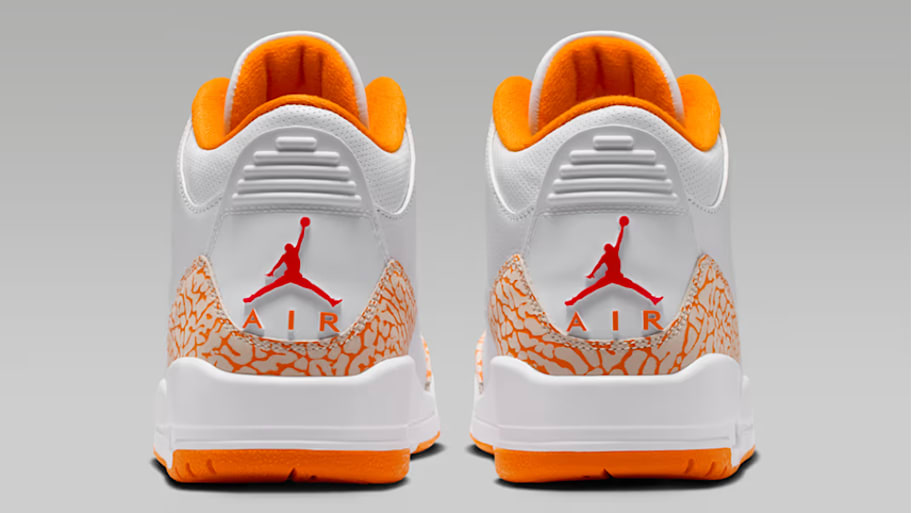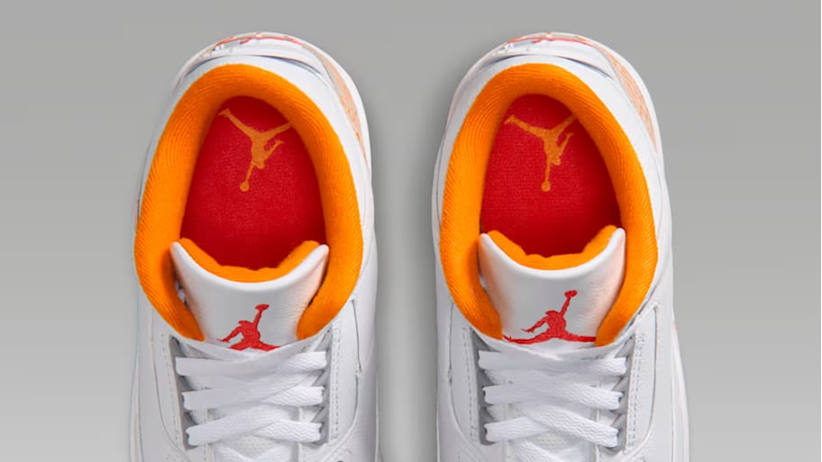 The White laces and Cement Grey accents continue the tribute to the Air Jordan 3's roots. Lastly, the outsole combines White, Orange Citrus, and Fire Red to tie together the seasonal design. No extra laces or packaging come with this colorway, but the fan-favorite hangtag is included.