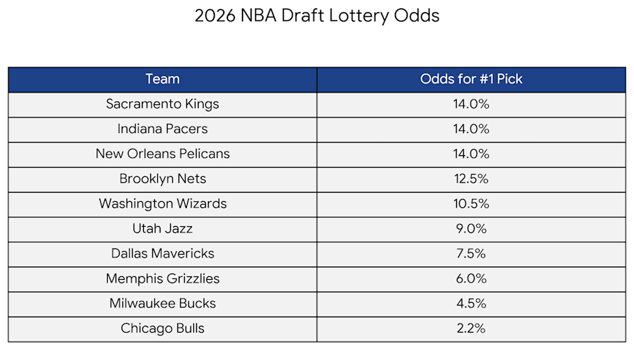 The Kings currently lead the pack with the best odds for the #1 pick. They are tied with Indiana and New Orleans at a 14% chance of landing the next franchise cornerstone.