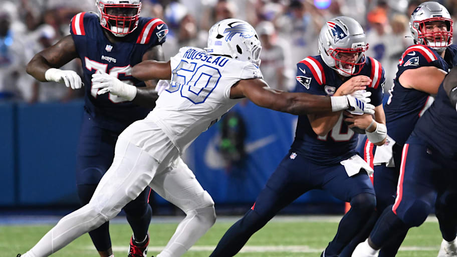 Greg Rousseau has been off to a somewhat slow start , but that wasn't the case on Sunday. He made two big plays on the opening drive, starting with a tackle for a two-yard loss on running back Rhamondre Stevenson. Two plays later, Rousseau got into the backfield and sacked Drake Maye on third down, forcing an early punt.