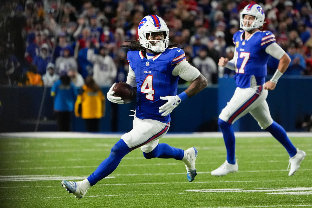 "James Cook III has surpassed 1,000 rushing yards for a third consecutive season. Cook III is the third Bill in team history to rush for 1,000 yards in three consecutive seasons, joining Thurman Thomas (8 consecutive seasons) and O.J. Simpson (5)."