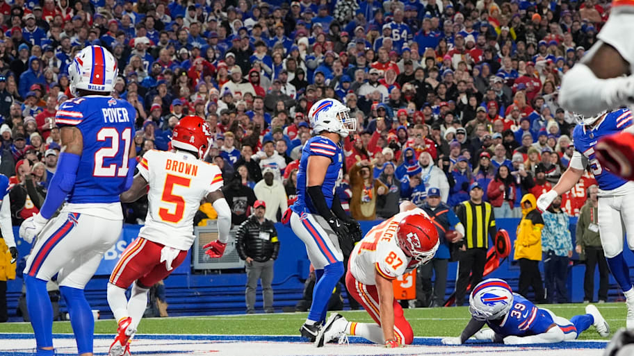 If so, it was quite the send-off. Just before halftime Kelce leaped for a Patrick Mahomes pass in the end zone and took a vicious shot to the ribs from Bills' safety Cole Bishop. He had the wind knocked out of him and went to the medical tent before gingerly walking to the locker room. On the way, he exchanged gestures and words from Bills fans in the stands.