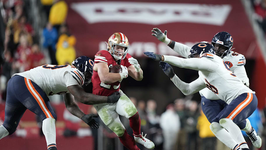The defense was a complete no-show in San Francisco. According to NFL Next Gen Stats, 49ers quarterback Brock Purdy was pressured on just nine of his 33 drop-backs, allowing him to dissect the secondary at his leisure. The 49ers averaged 5.9 yards per carry on the ground. Yes, Jaylon Johnson and T.J. Edwards combined to intercept and score a touchdown on the first play of the game, but for the next 59 minutes and 45 seconds, what we saw from the defense was a major letdown in what felt like a playoff game.