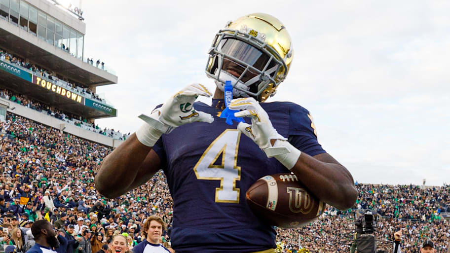 Notre Dame running back Jeremiyah Love will walk in and undoubtedly be propelled to lead-back status in a running back room that includes Cam Skattebo (recovering from injury), Tyrone Tracy (coming off his second consecutive 1,000-yard all-purpose season), and veteran Devin Singletary.