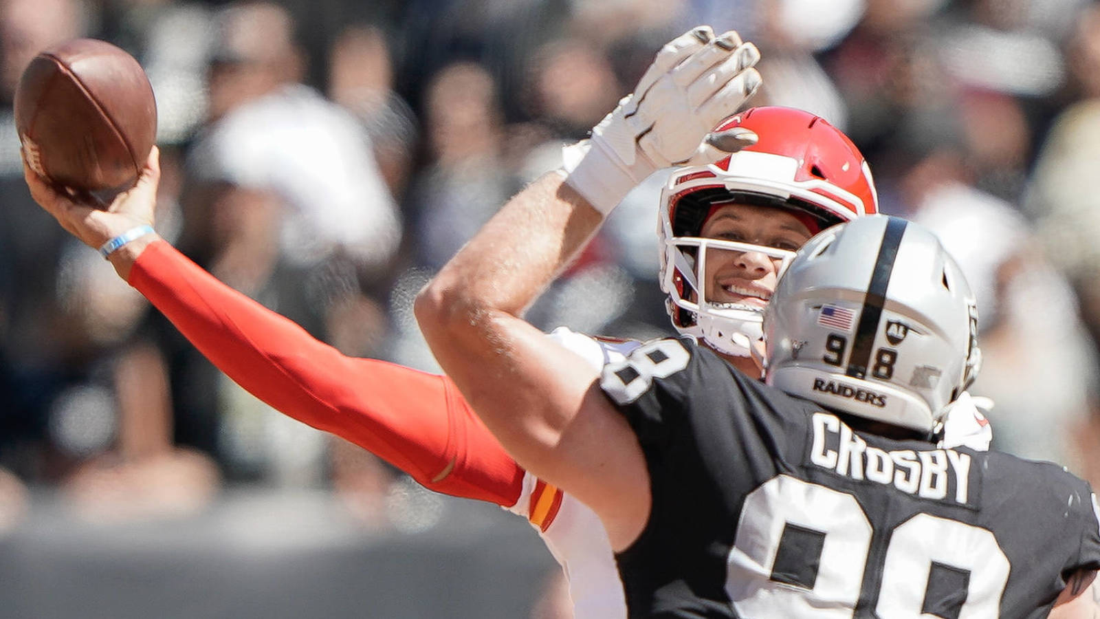Mahomes can afford to play the way he does because he's an excellent decision-maker who processes information quickly. However, there are rare occasions where his aggressive mindset results in a boneheaded throw, such as the following play against the Raiders.