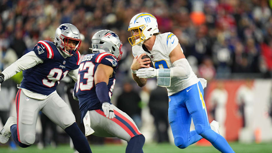 In their matchup against the Chargers, the Pats o-line failed to win the battle in the trenches — as the Bolts produced 12 total pressures and held the Patriots to an average 38% rushing success rate. In particular, rookie left tackle Will Campbell (two sacks, six total pressures) and left guard Jared Wilson (two sacks, four total pressures) struggled to keep pace with L.A.’s defensive front.