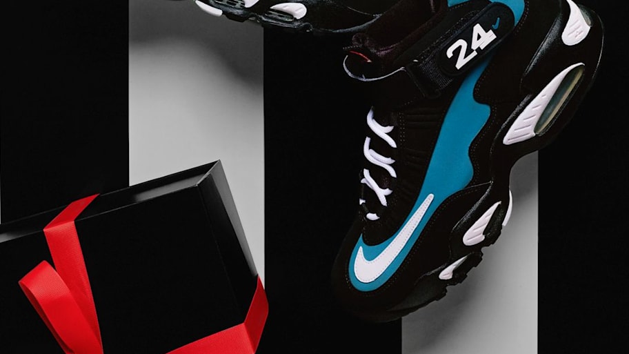 The Nike Griffey 1 'Freshwater' drops on Friday, December 12. Shoppers can buy the sneakers in adult sizing for $170 and Grade School sizing for $122 via launch reservation at footlocker.com and kidsfootlocker.com and in select Foot Locker and Kids Foot Locker stores nationwide.