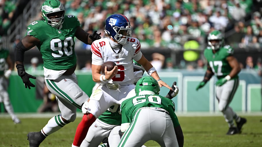 The run game, meanwhile, lost its steam when rookie Cam Skattebo had to leave the game with a dislocated ankle. The Eagles also apparently figured out how to bottle up Dart from hurting them with his legs.