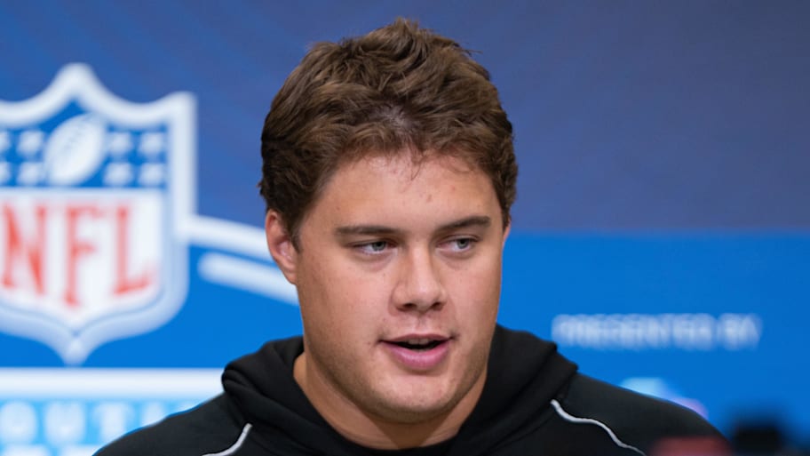 Finally, they can shore up their offensive line by selecting Caleb Lomu. Their right tackle needs some attention, as Jaylon Moore is in the last year of his deal, and Lomu will be able to be plugged in right away and give them significant reps. He played left tackle in college, but he'll have a year playing as their backup to make that adjustment.