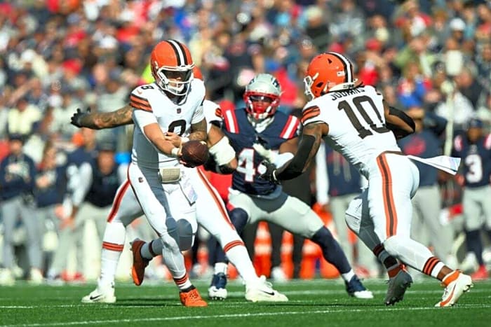 In his absence, fellow rookie Dylan Sampson saw most of the work, although it’s difficult to say if this trend would continue in a more neutral game script. The Patriots blew the game open in the third quarter and forced the Browns into a pass-heavy offense. In total, Sampson recorded three carries for zero yards while adding five catches for 29 yards. Veteran Jerome Ford, meanwhile, finished the night with one reception for negative one yard and didn’t record a single carry.