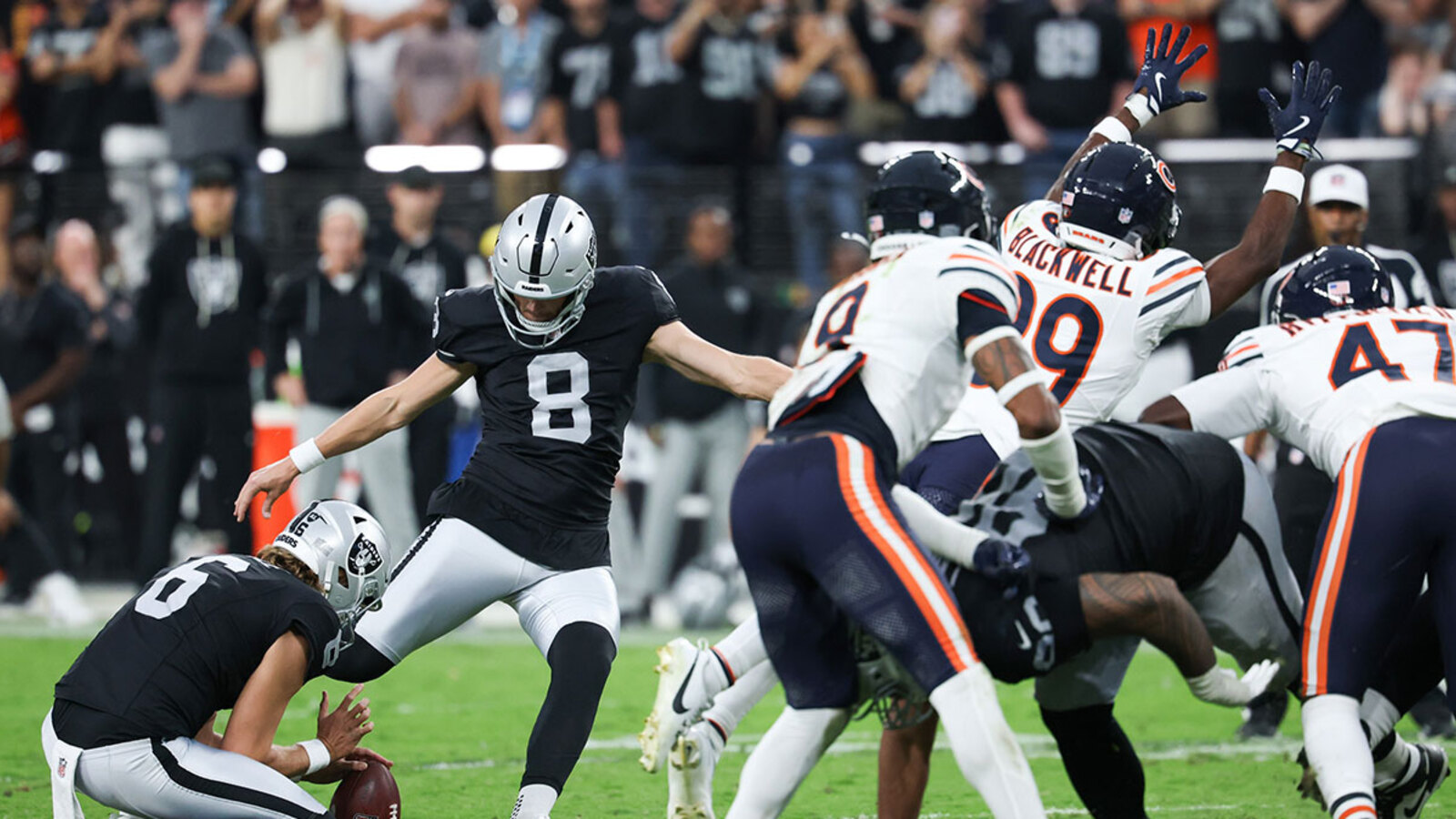 Even so, the Raiders had a chance to escape Soldier Field with a win. Down by one with under a minute left, they lined up for a 54-yard field goal attempt. Instead of redemption, disaster struck again. Bears cornerback Josh Blackwell broke through and blocked the kick. It sealed the game and sent Las Vegas to its third straight loss.