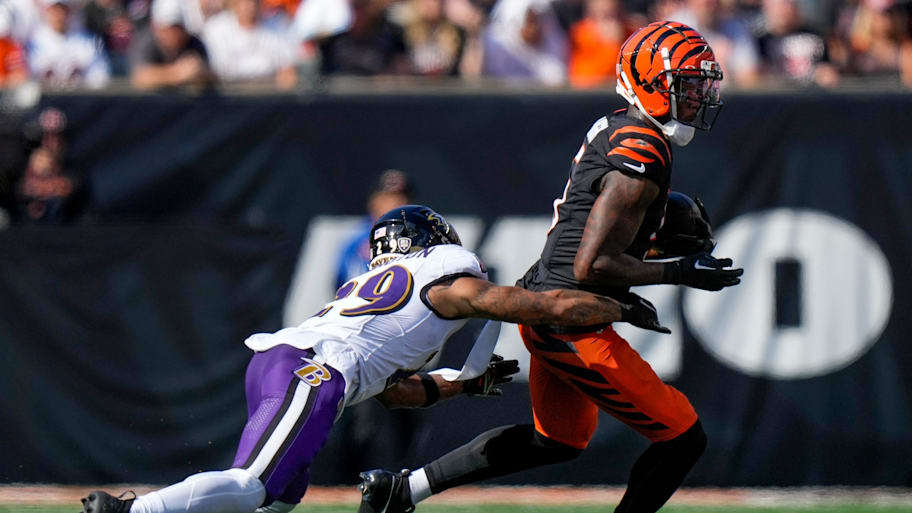 Cincinnati's passing attack was held in check in the first half, but began to move the ball better in the second after Ravens rising star second-year cornerback Nate Wiggins left the game and did not return with an injury.