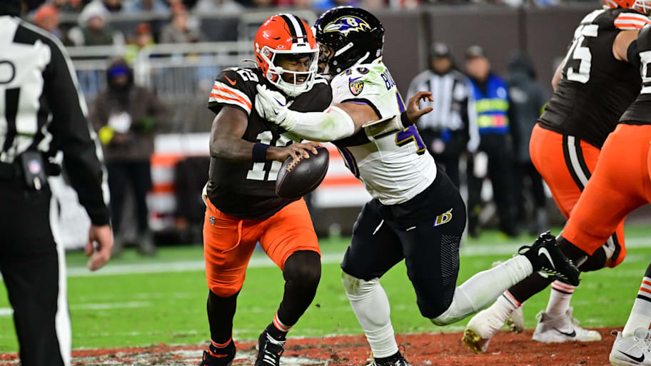 While first-round safety's streak of consecutive games with an interception came to an end, he was integral to the pass defense, allowing a season-low 81 net passing yards. Starks applied a couple of pressures on blitzes off the edge, forcing an incompletion and recording his first career quarterback hit on the first, and while he got juked on the second, the pass from Browns rookie quarterback Shedeur Sanders still wound up incomplete.