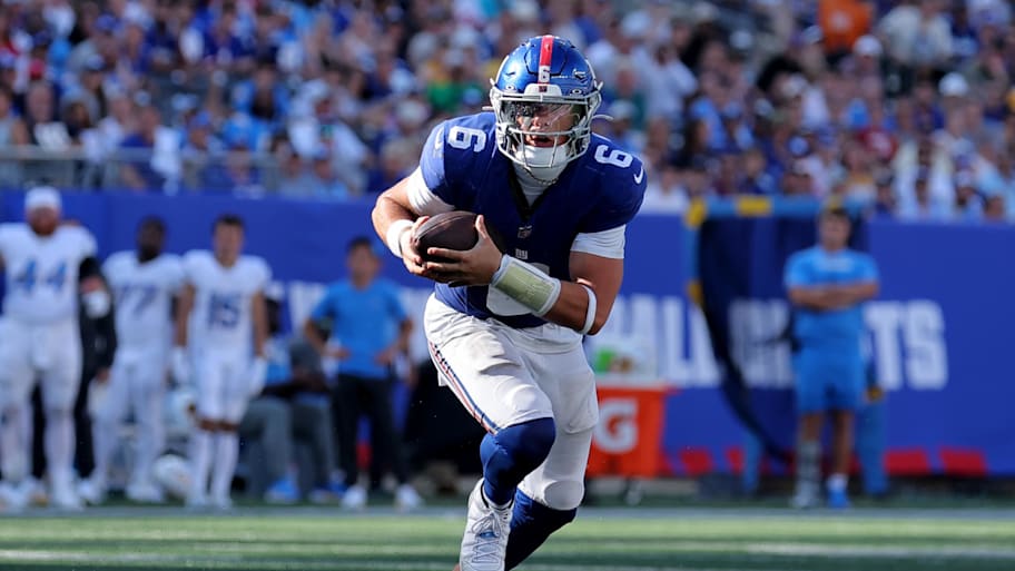 Still, at times, Dart was risky with his decision-making in the open field as he tried to shed tacklers with his throwing arm, and he had one fumble that was recovered by left tackle Andrew Thomas. Those issues likely had an impact on his final grade, which was modest despite the huge win he earned in his first regular-season game under center.
