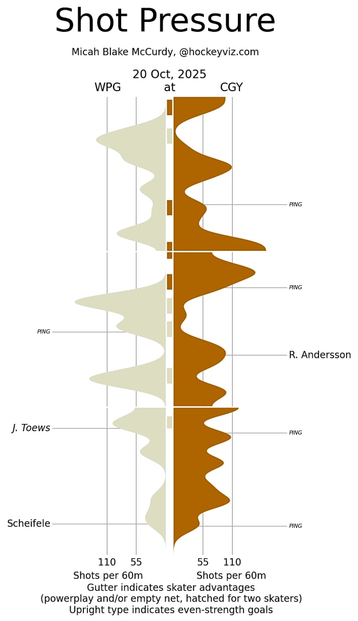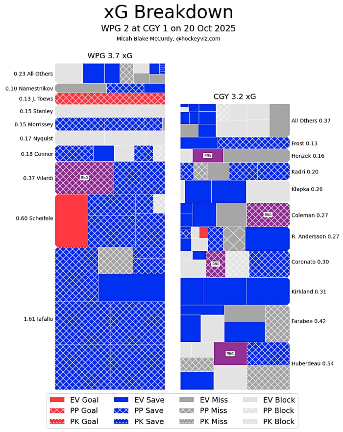 (Stats compiled from Naturalstattrick.com // Game Score from Hockeystatcards.com // xG and Under Pressure charts from HockeyViz.com // Game Flow and Shot Heatmap from NaturalStatTrick.com)