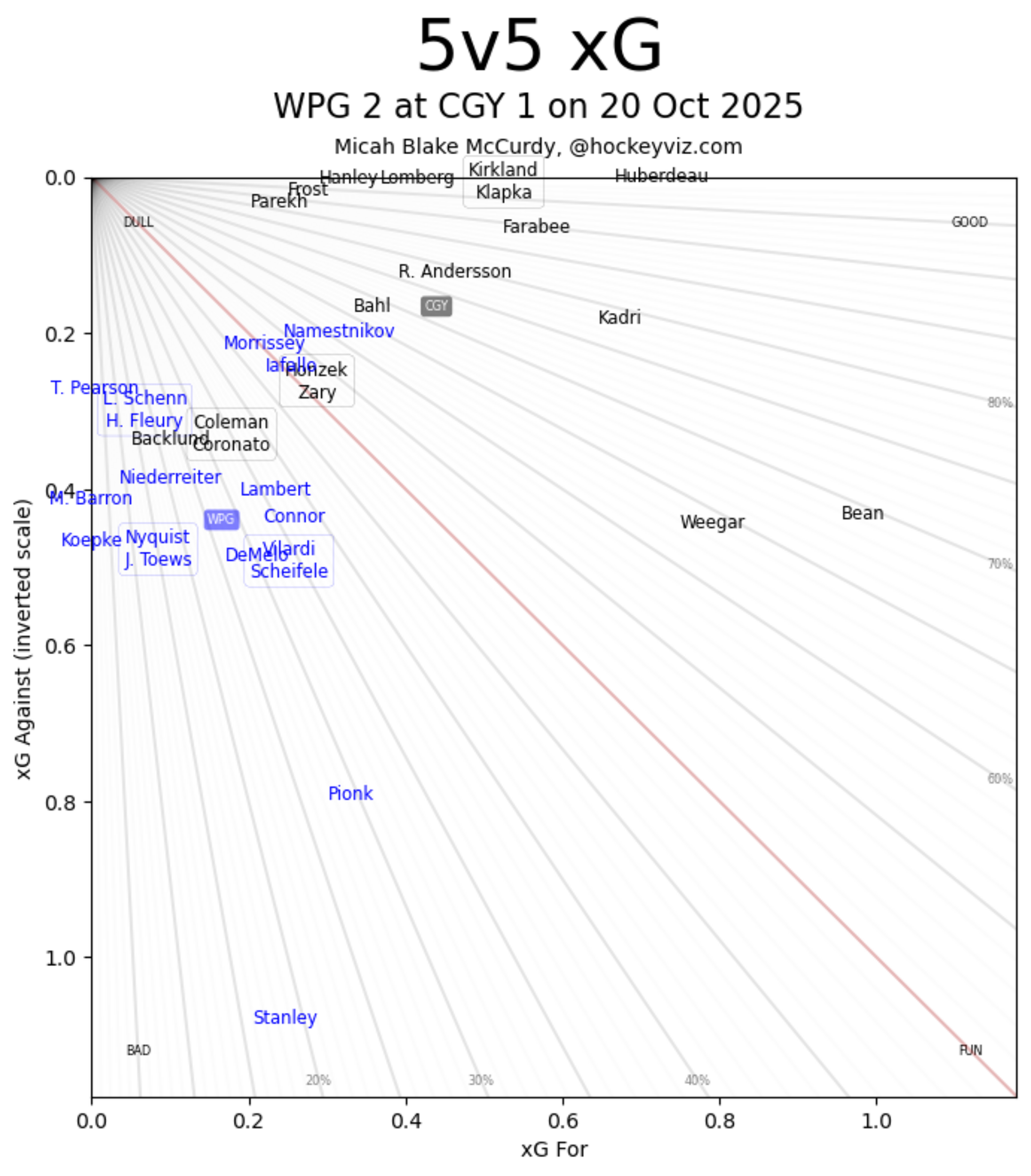 It’s a Team Game – Of all the losses on this streak this one hurts the most. The Calgary Flames showed up and controlled play for the majority of the game. They played strong defence except for one single play in the third period. Jake Bean took a rush up the ice and Mark Scheifele took advantage on the rush against the centre who could not catch up to him. Dustin Wolf – who was an absolute warrior on the penalty kill in this one – can’t score the goals to. He was as acrobatic as ever going against one of the best across the ice and he certainly deserved a better result. The Flames as a whole deserved a better result, but until they fundamentally change how they attack at 5v5 they will continue to struggle.