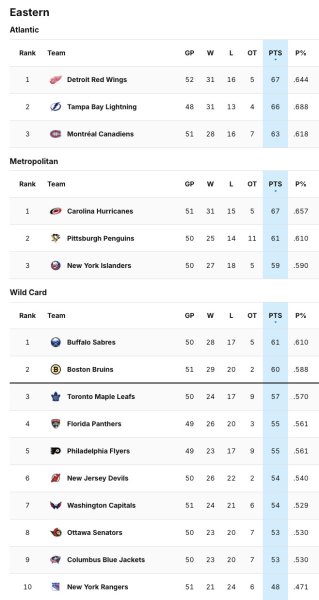 – The standings are tight in the Atlantic. Yesterday’s loss hurt, as the Sabres closed to within two points of the Habs.