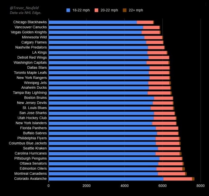 Most can tell that the team is likely below average when it comes to hitting the blue lines with speed. With the help of NHL Edge, the league’s go-to for publicly available player-tracking tech, we can give ourselves a better idea of who is fast and who, well, isn’t.