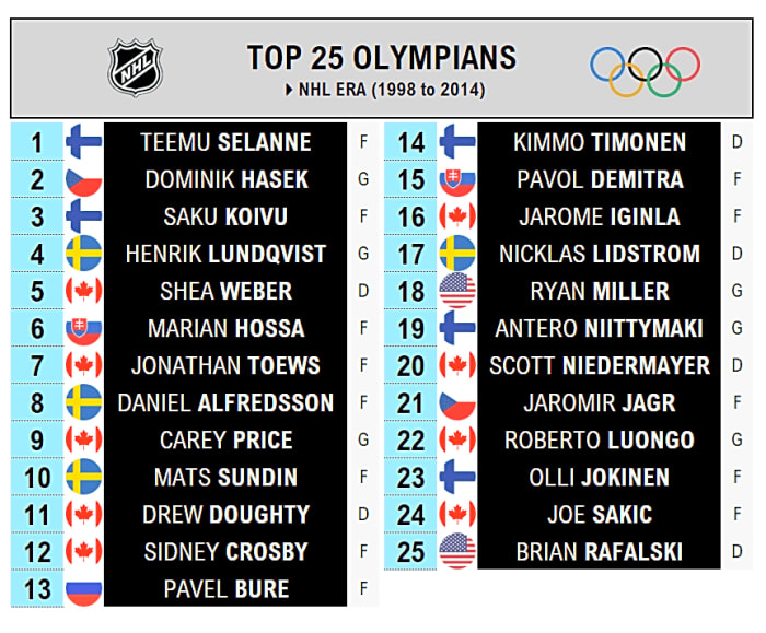 Let’s get to it: counting down the top 25 Olympians of the NHL era — plus 10 honorable mentions.