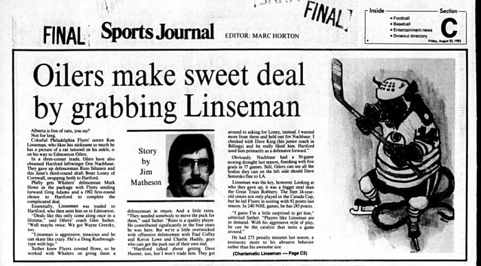 One part is definitive: Ken Linseman was a huge part of the team’s first Stanley Cup in 1984.
